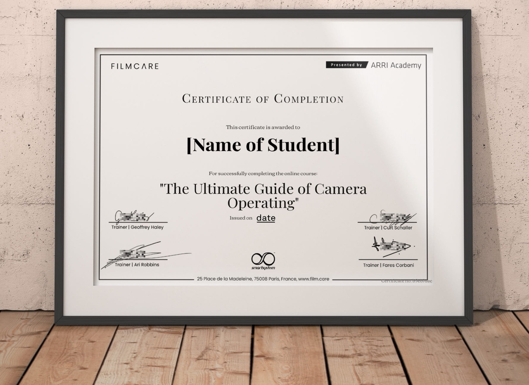 Earn your official Filmcare Certificate signed by the instructors, recognizing your training in professional camera operating and allowing you to strengthen your résumé.